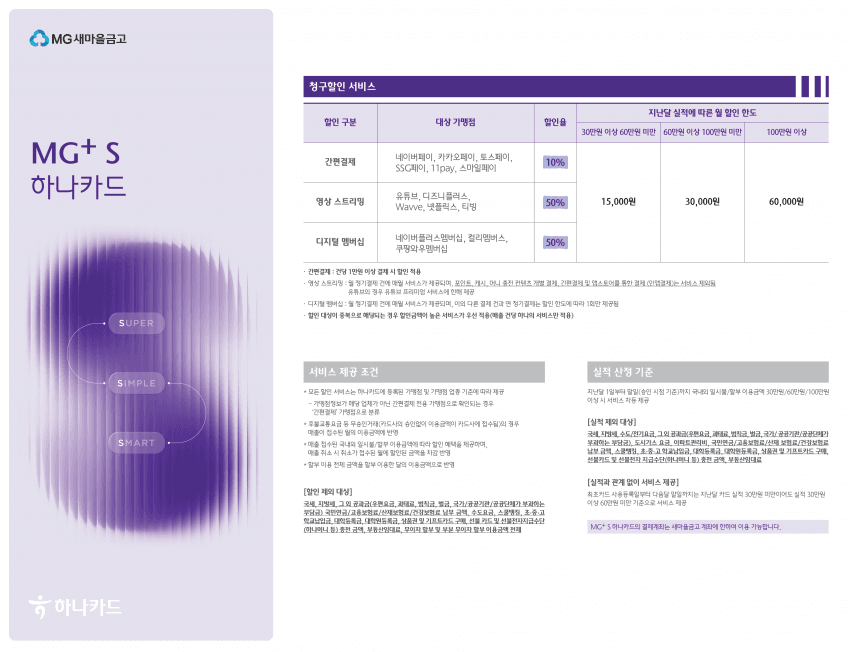 1. 연회비 캐시백 : 올해 10월까지 카드를 최초 발급한 MG 출자회원의 경우, 마케팅동의 + 발급월 익월 말까지 10만원 이상 이용 시